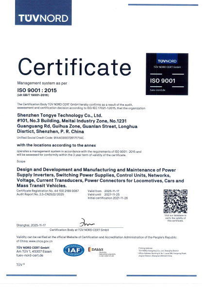 成立二十多年來,通業(yè)科技勵精圖治,在跟蹤國際軌道交通前沿技術,引進、消化、吸收方面做了大量工作。開發(fā)出了一系列國內(nèi)領先的擁有自主知識產(chǎn)權(quán)的軌道交通行業(yè)使用的電子部件,涵蓋電源、控制、網(wǎng)絡、通信、風機、電機等領域。公司產(chǎn)品以其優(yōu)異的性能、穩(wěn)定的質(zhì)量,得到了用戶的一致贊譽,成為軌道交通行業(yè)一流的部件制造企業(yè)。